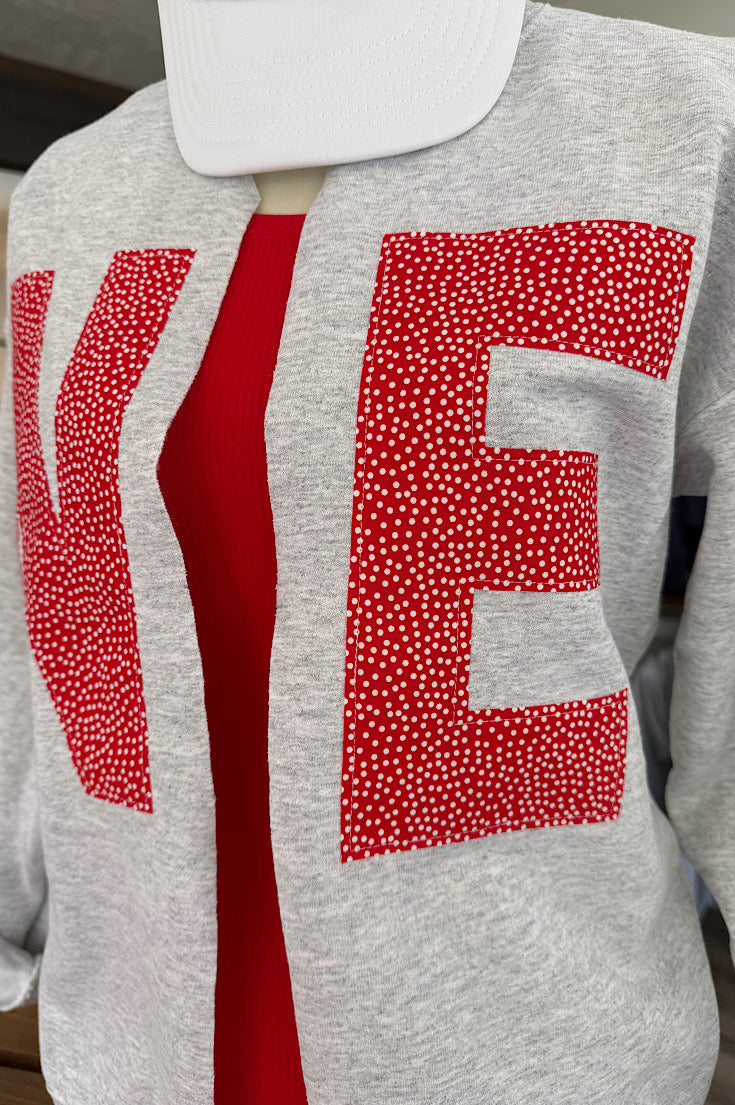 Stay cozy and spirited with the Gray NE Sweatshirt Cardi! This comfy layer features eye-catching red NE applique letters sewn on the front, adding a fun pop of color perfect for game days or just lounging around. True to size and effortlessly soft, it’s your go-to for warmth and style whenever you need that extra bit of snug comfort.